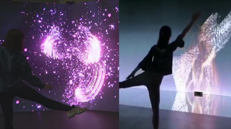 ★粒子會(huì)根據(jù)你的動(dòng)作而變幻,科技感十足比較新穎酷炫。適合活動(dòng)暖場(chǎng),酒店連廊入口等。
