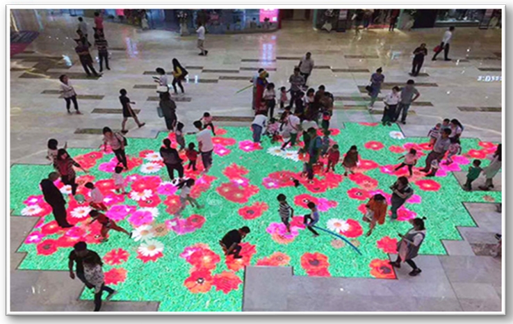 ★備注:1.最小顯示單元為500x500mm,尺寸隨意拼裝、功耗為400W/平米。2.互動方式為接觸屏幕互動。3.感應(yīng)內(nèi)容靈活多變。