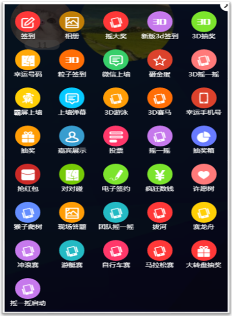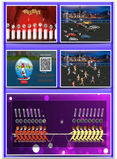 ★免費支持自定義活動主題、背景、logo、公眾號、二維碼、獎項等所有可見內(nèi)容性文字圖片或部分游戲背景、畫面,大屏互動游戲品類非常之多,以上圖片為部分游戲,如需要游戲可根據(jù)客戶要求定制開發(fā)。