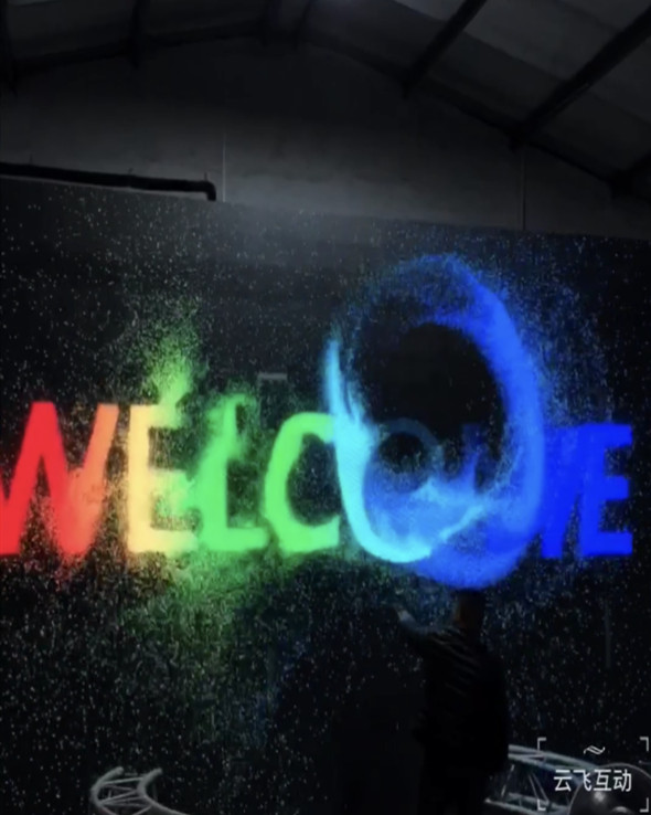 ★沒有人的時候就是一個靜態(tài)的LOGO,有人走過時組成LOGO的粒子被打散隨后又聚合一塊,形成非常炫酷的粒子效果,極大的增強了互動性和品牌宣傳的效果。